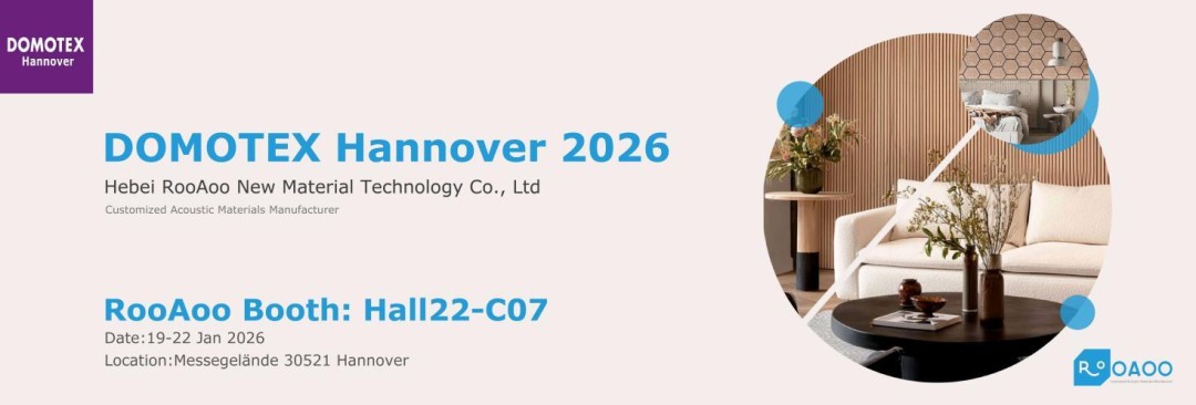 DOMOTEX Hannover 2026 will be held in Germany from January 19 to January 22, 2026, bringing together global manufacturers, suppliers, and industry professionals. Throughout the exhibition, Hebei RooAoo New Material Technology Co., Ltd. will be located at Booth 22-C07, where visitors can learn more about the company’s acoustic panel products and export capabilities.