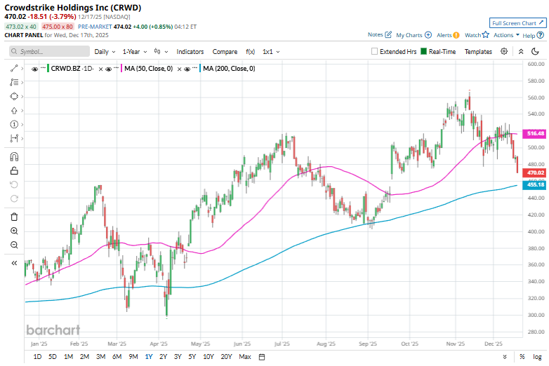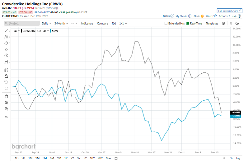 This cybersecurity leader has slipped 17.1% from its 52-week high of $566.90, reached on Nov. 12. Shares of CRWD have surged 5.5% over the past three months, slightly underperforming the SPDR S&P Software & Services ETF’s (XSW) 5.7% dropduring the same time frame.