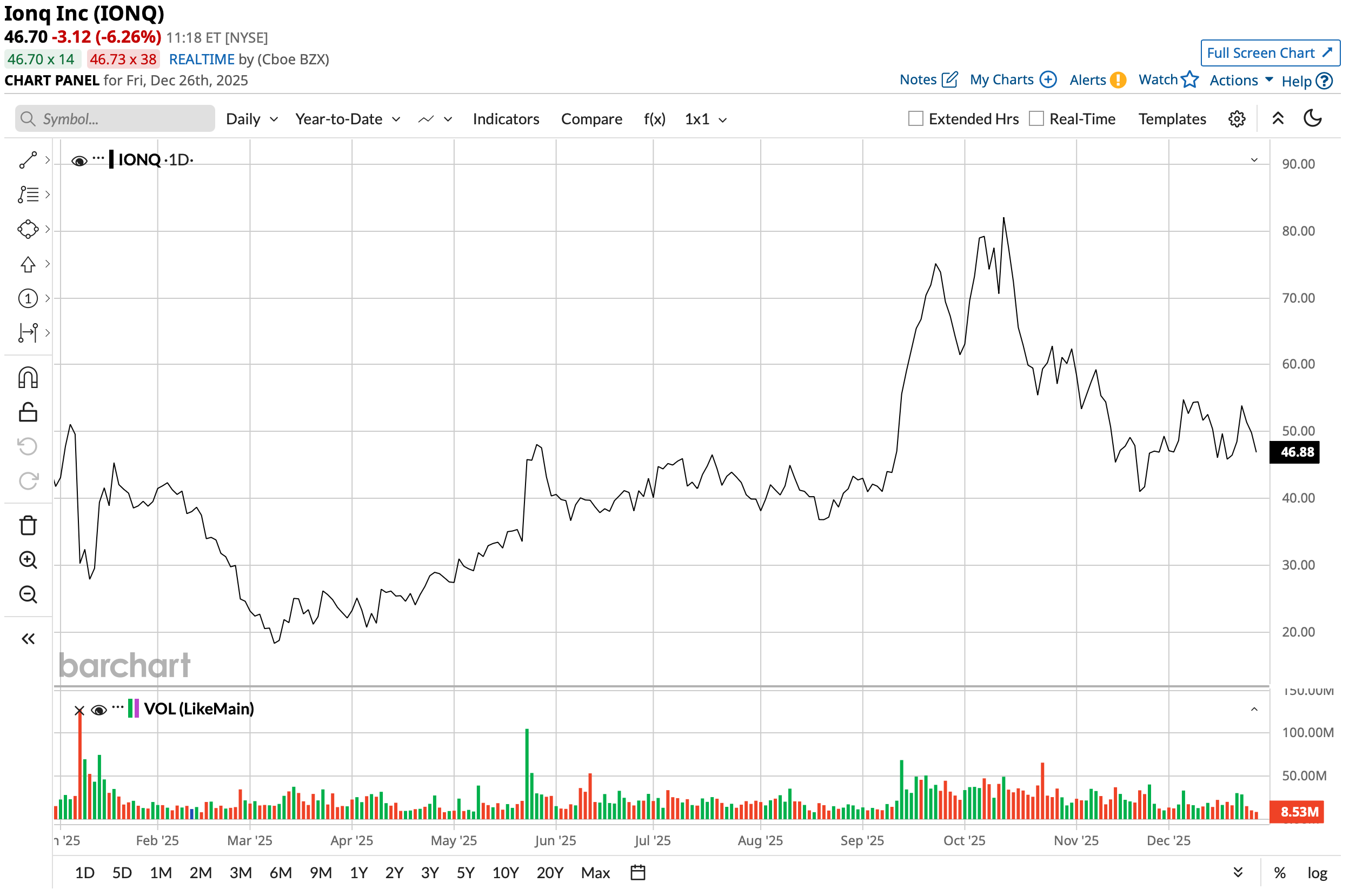 Since IonQ's latest results for the most recent quarter, the stock is down about 18%. A quantum leap in losses was the main culprit, although revenues came in ahead of the consensus estimates. The third quarter of 2025 saw IonQ report revenue of $39.9 million, up a major 222% from the previous year. The company also achieved a world-record 99.99% Two-Qubit Gate performance, making it the first company to secure fidelity required to scale to full-fault-tolerant quantum computing.