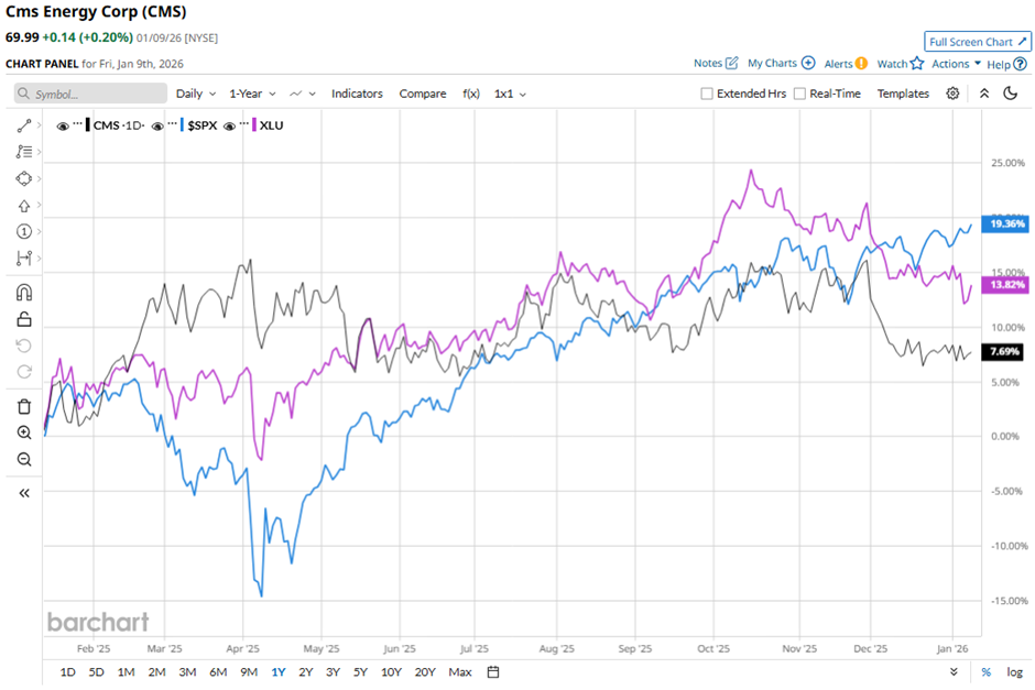 Shares of CMS have returned 5.6% over the past 52 weeks, underperforming both the S&P 500 Index's ($SPX) 17.7% increase and the State Street Utilities Select Sector SPDR ETF's (XLU) 11.9% gain over the same period.