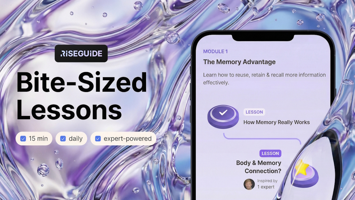 RiseGuide's approach centers on digestible content formats and practical assignments designed to improve retention and follow-through.