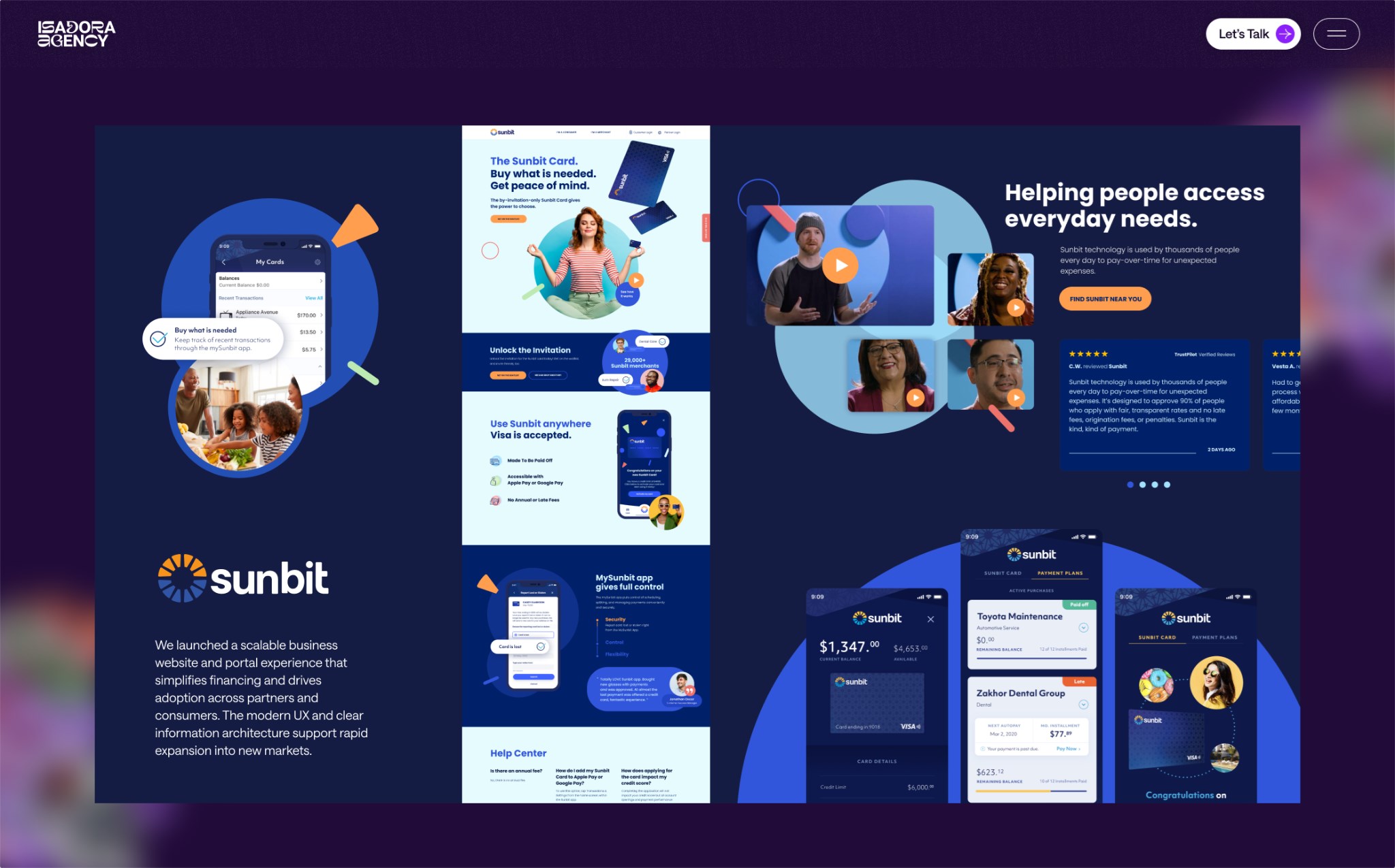 Isadora Agency rebuilt Sunbit's digital presence from scratch, designing and developing a mobile-first marketing website and consumer mobile app interface to drive merchant partnerships and support their financing customers. Source: Isadora Agency