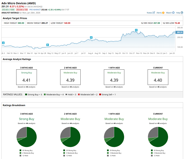 On Jan. 27, AMD received a boost after UBS analyst Timothy Arcuri reaffirmed a “Buy” rating and raised the price target from $300 to $330, reflecting a 10% increase and signaling strong confidence in the company’s market position and future growth prospects.