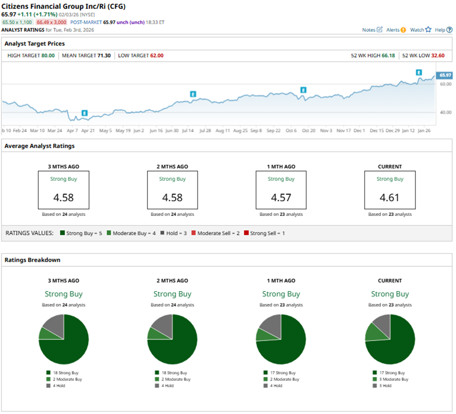 On Jan. 26, Citi raised its price target on Citizens Financial to $71 and maintained a “Buy” rating.