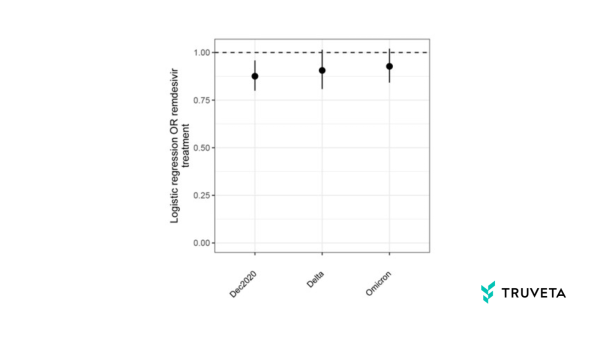 This Truveta research found that Black individuals were treated with remdesivir at a significantly lower rate (12%) than white individuals during the December 2020 wave, after adjustment for demographic and comorbidity factors. Statistically significant trends were not observed during either the Delta or Omicron waves.
