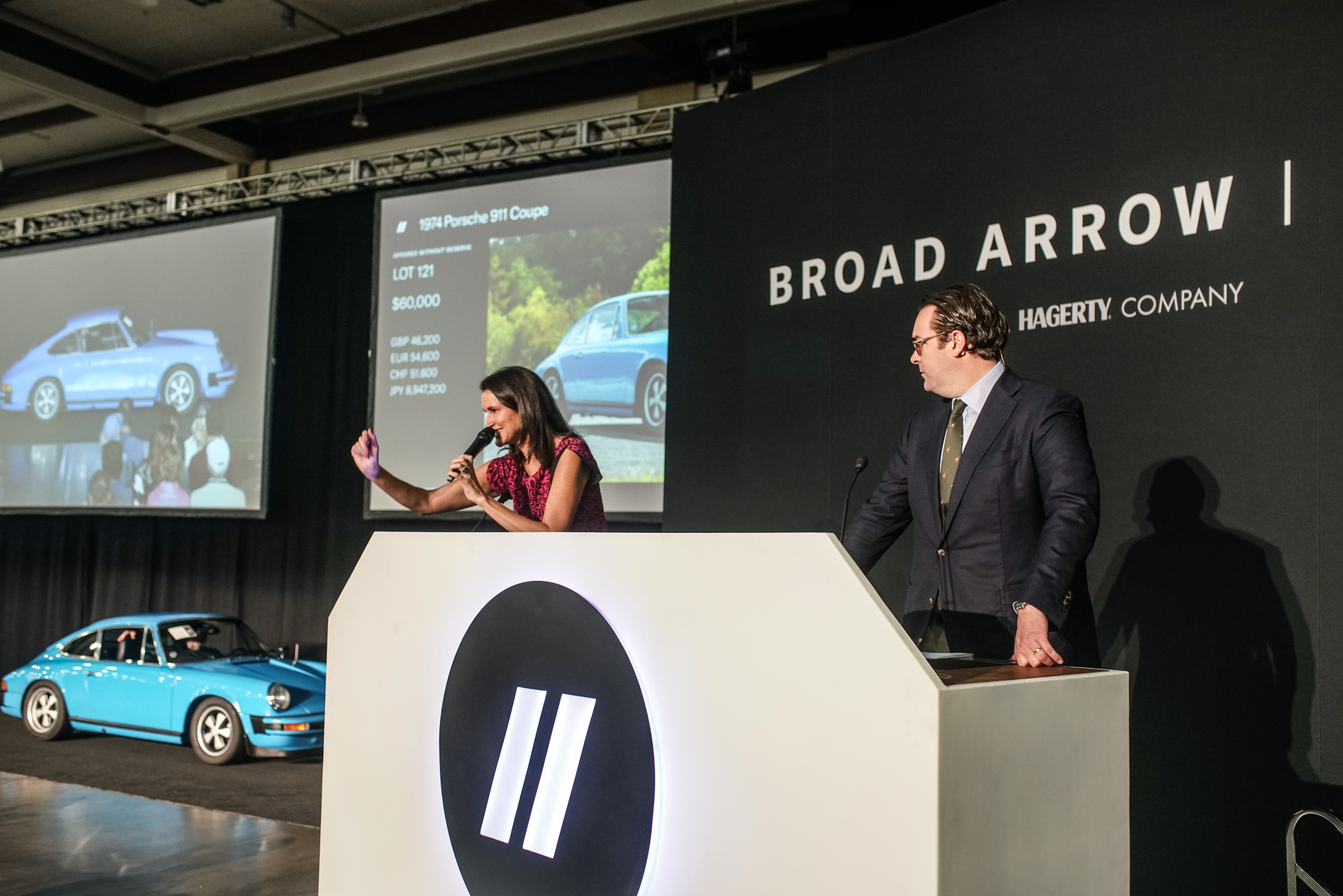 - Broad Arrow Principal Auctioneer, Lydia Fenet, and Broad Arrow VP of Operations, Alain Squindo, conduct The Chattanooga Auction during The Chattanooga Motorcar Festival